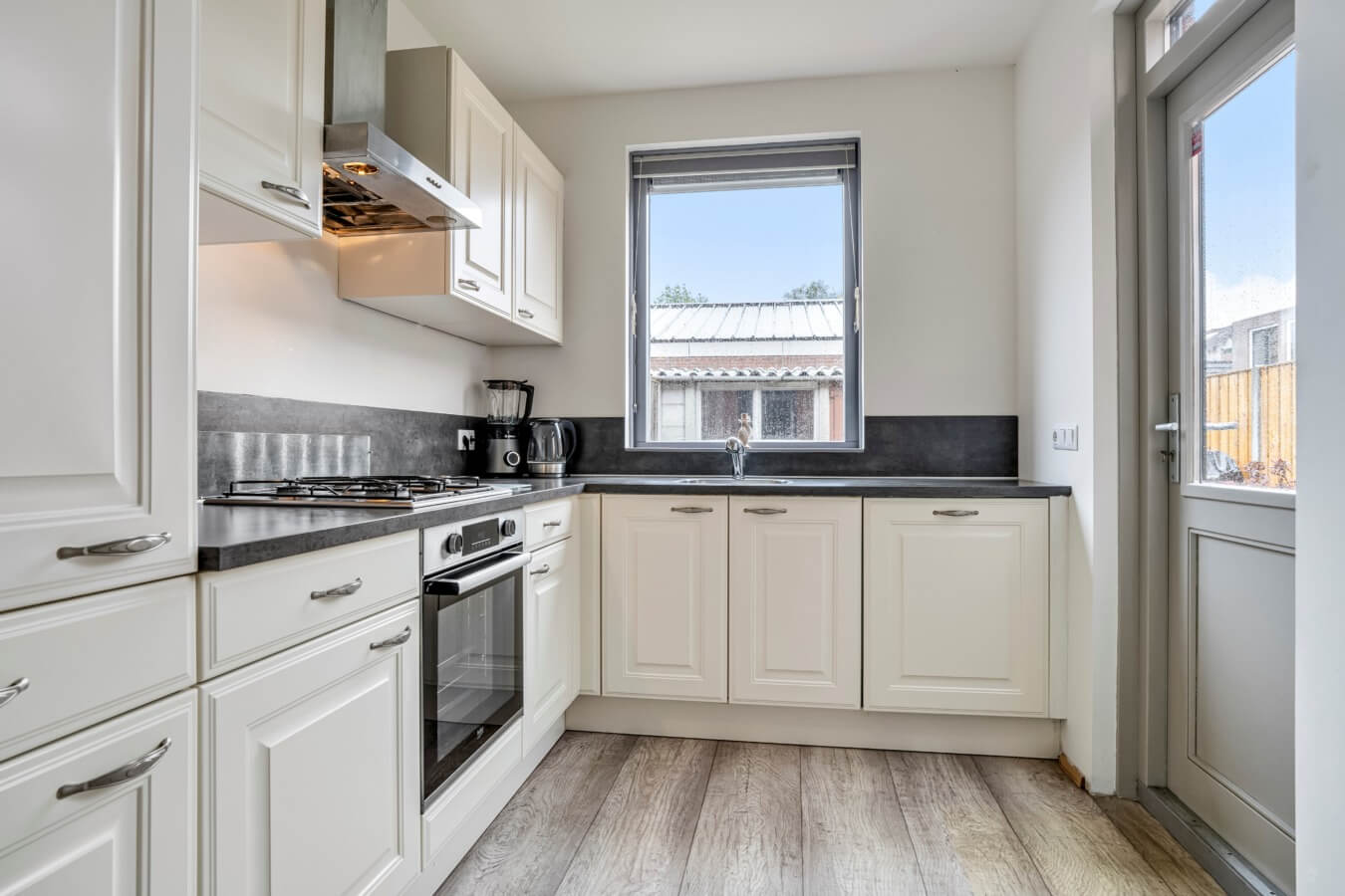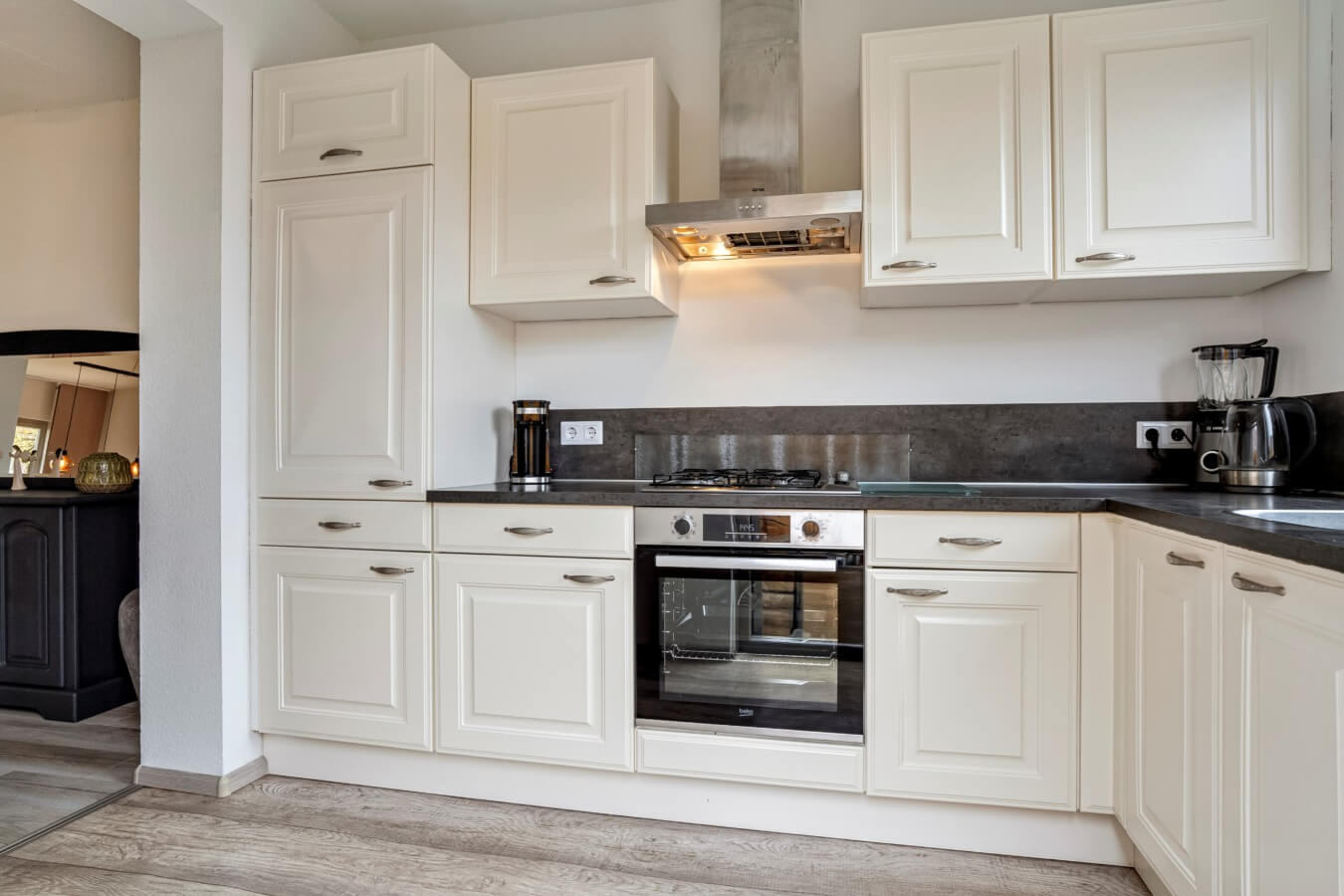 De keuken (2016) bevindt zich aan de achterzijde en is voorzien van diverse inbouwapparaten, waaronder een oven (2023), koelkast, vriezer, vaatwasser (2023), 4-pits gaskookplaat en afzuigkap. Dankzij de degelijke fundering is de uitbouw voorbereid op een eventuele toekomstige opbouw – ideaal als je later nog wilt uitbreiden.