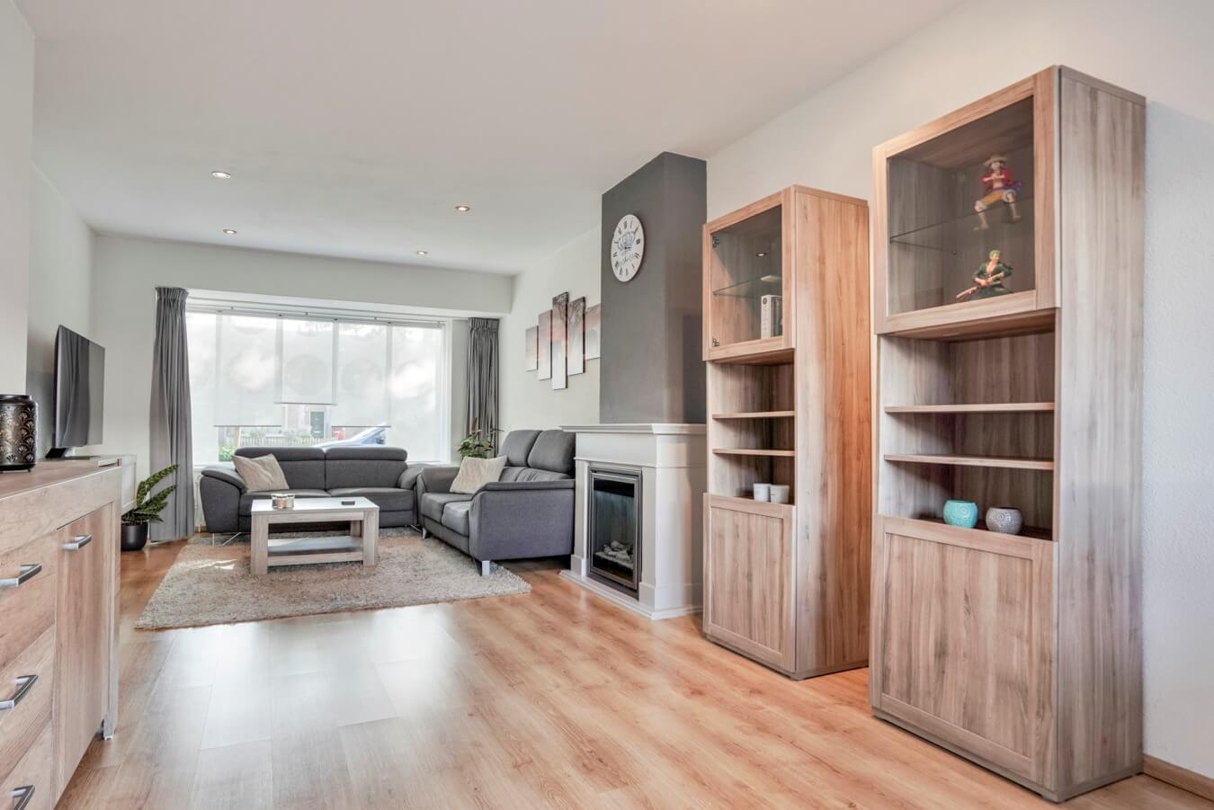 Goede keuze! De woonkamer verrast namelijk direct met haar nette afwerkingen, de zeeën aan ruimte en de aangename hoeveelheid lichtinval die door de grote raampartijen aan weerszijden binnenvalt. De uitbouw aan de achterzijde maakt de kamer extra ruim, waardoor je flexibel bent in de indeling en gemakkelijk een apart zit- en eetgedeelte kan realiseren. De elektrische haard zorgt hier voor extra gezelligheid.