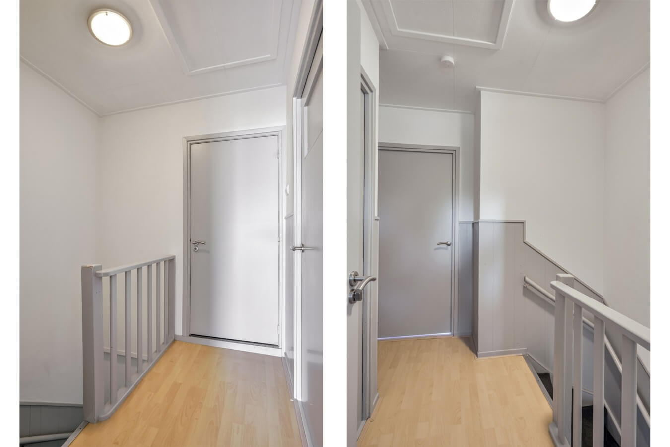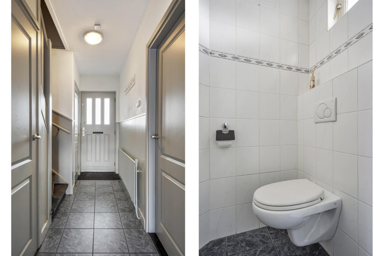 Bij binnenkomst word je verwelkomd in de hal, waar je de toiletruimte met hangend closet, de trapopgang en de trapkast met meterkast zal ontdekken. Zullen we de grijze vloer volgen naar de living?