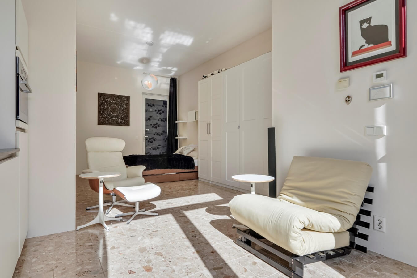 Deze modern afgewerkte studio is gelegen op de begane grond van het stijlvolle complex Riga. De ligging en de luxe afwerking en faciliteiten maken van deze studio een unieke woonplek. De studio beschikt onder meer over een complete keuken en moderne badkamer, een eigen parkeerplaats. Daarnaast kun je als eigenaar van alle voorzieningen van het complex gebruikmaken waaronder het verwarmde buitenzwembad met ligweide in de groene stadstuin en de gezamenlijke wasruimte. Het stadshart ligt letterlijk om de hoek, dus je bent binnen een enkele minuten in het levendige centrum.