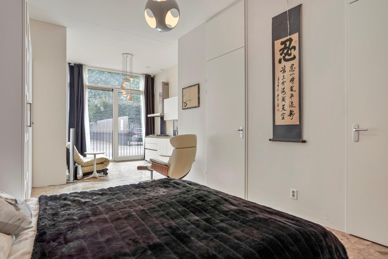 Tevens is via de woon-/slaapkamer toegang tot de bergruimte. In deze grote kast is veel opbergruimte. De meterkast en de combiketel zijn er geplaatst en er is met een praktisch en flexibel opbergsysteem veel ruimte gecreëerd om voorraad en spullen op te bergen. Hier bevindt zich ook een aansluitpunt voor de wasmachine (mocht je geen gebruik willen maken van de gezamenlijke wasruimte).