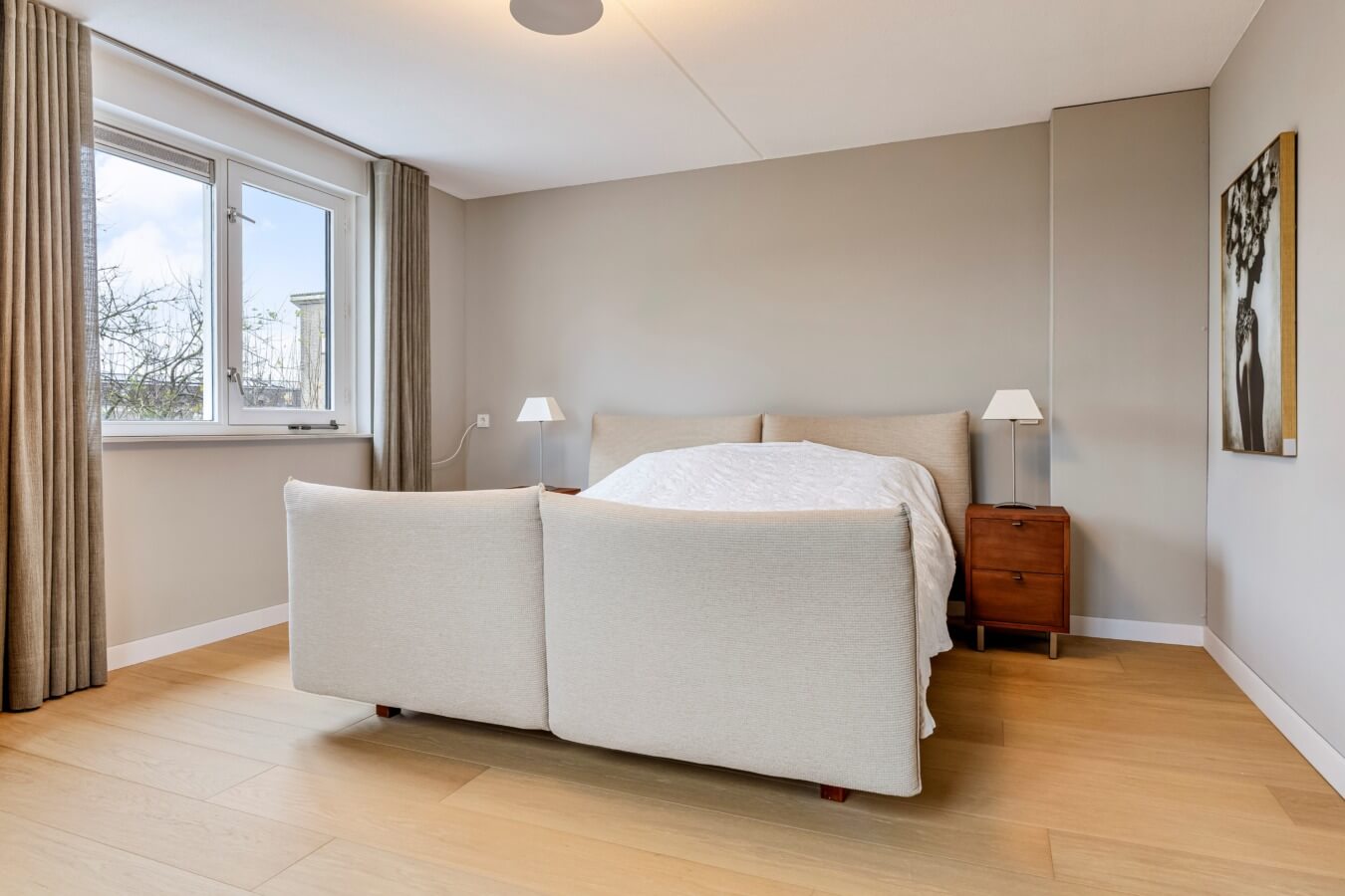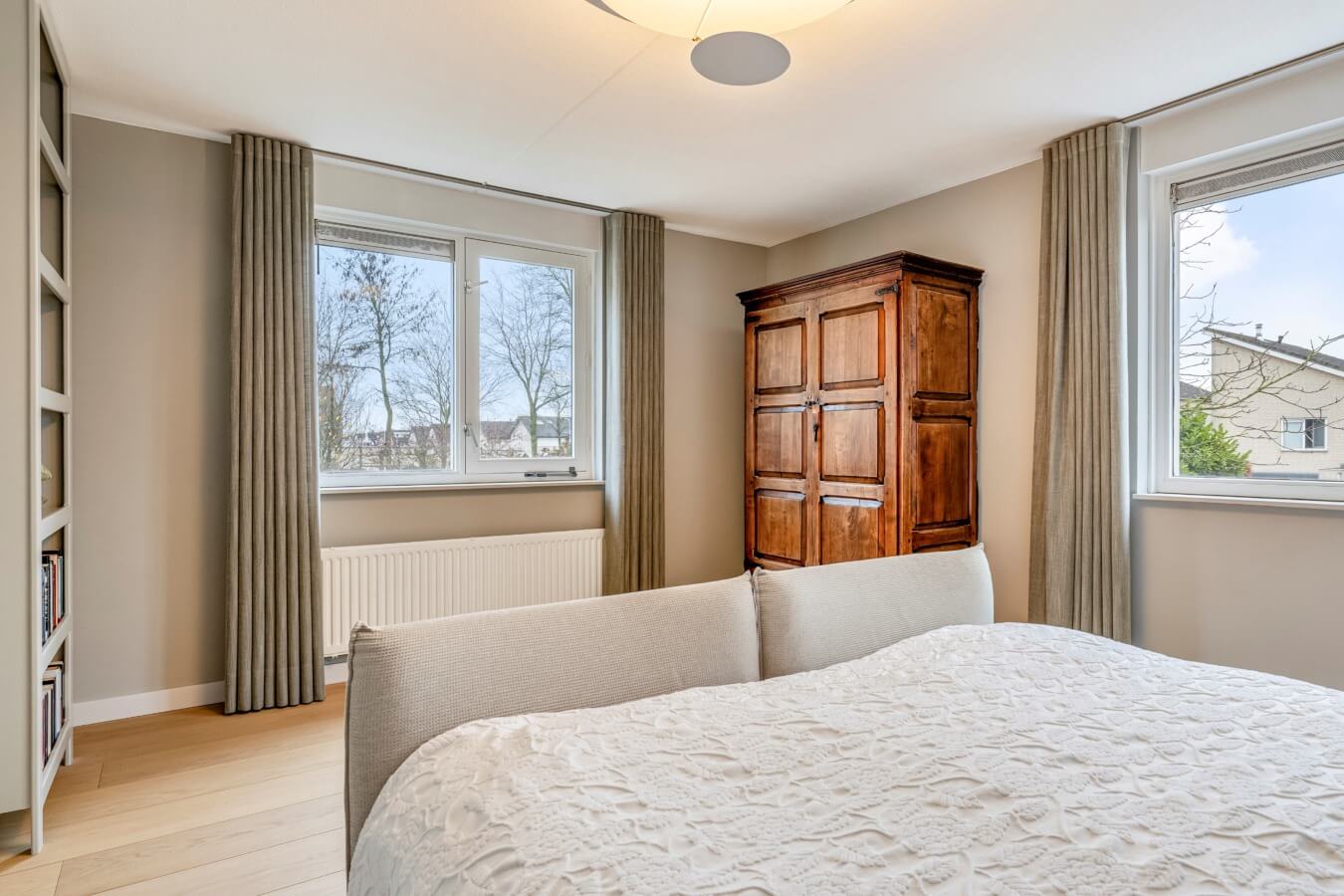 De overige (tevens lichte en nette) slaapkamer, gelegen aan de voorzijde, is perfect voor de kids, logees, of om in te richten als thuiswerkplek. Of ga jij hier een gave walk-in-closet realiseren, zoals de huidige bewoners hebben gedaan?