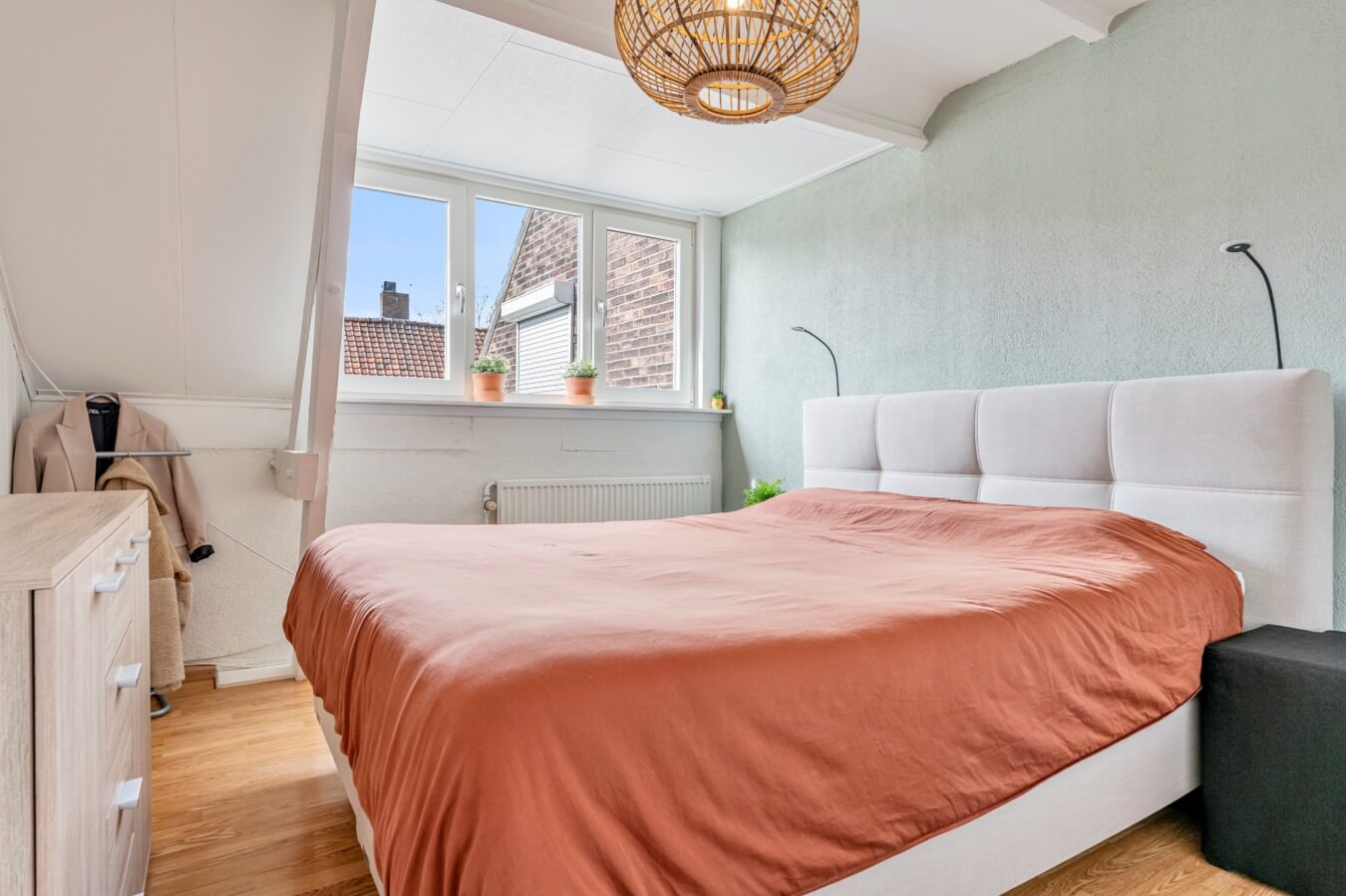 De grootste slaapkamer is aan de voorzijde gelegen en heeft de ruimste opzet, een fijne hoeveelheid lichtinval, een dakkapel (2021) met rolluik en een sfeergevoel dankzij de speelse houten balken. Kortom: alle ingrediënten voor een ultieme master bedroom én een heerlijke nachtrust.