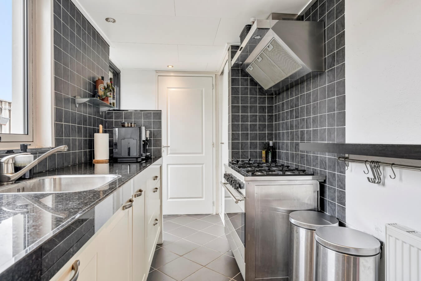 Achter de schuifdeuren in de keuken bevindt zich een praktische ruimte met de HR cv-ketel.