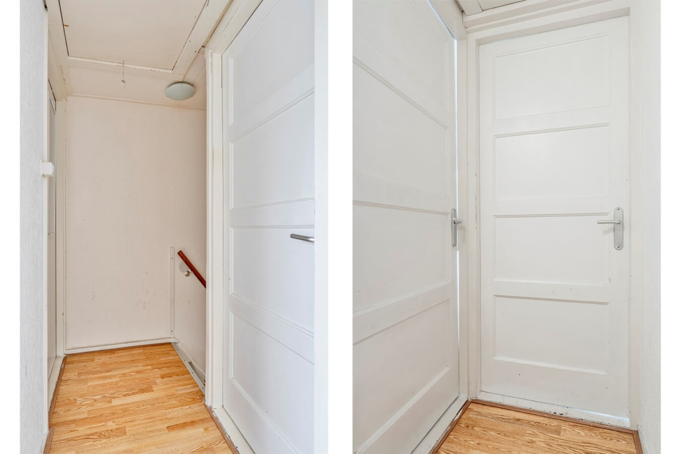 Via de trap in de entree kom je op de overloop van de eerste verdieping, waar je toegang hebt tot de drie slaapkamers die de woning rijk is.