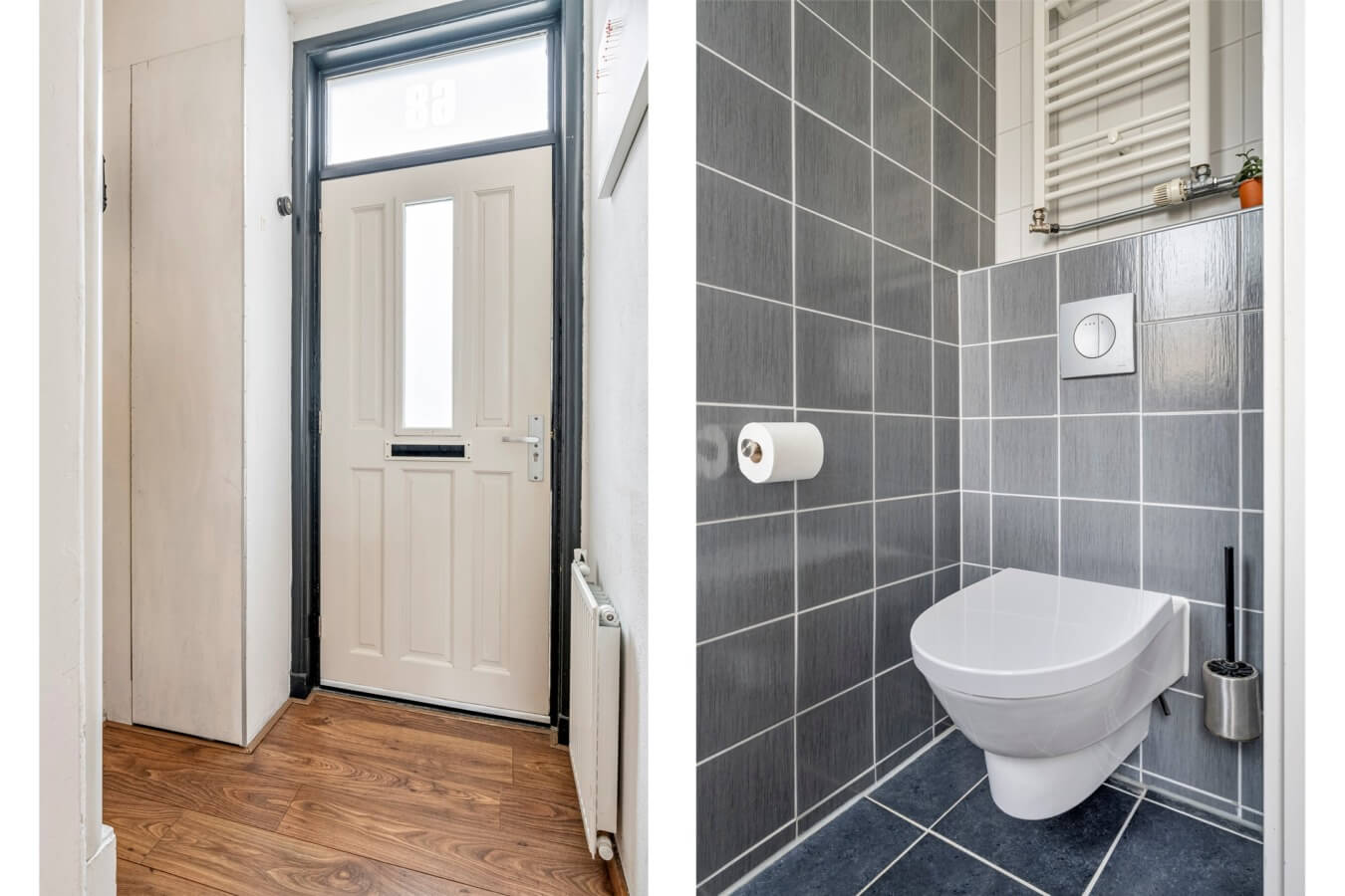 Het knusse exterieur van de woning geeft het sfeergevoel waar we het over hebben meteen weer. Je zal vast en zeker benieuwd zijn naar de binnenkant, dus laten we snel gaan kijken. Je komt de woning binnen in de hal, waar de meterkast (6 groepen / 2 aardlekschakelaars) en de trapopgang naar de eerste verdieping te vinden zijn. Op naar de living.