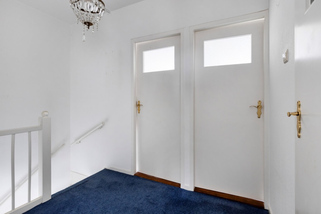 Via de trap in de woonkamer kom je op de overloop van de eerste verdieping, waar er toegang is tot de vier slaapkamers en de badkamer. Op de overloop en in de slaapkamers ligt, net als in de living, vloerbedekking. Keep in mind: dat kan er uiteraard gewoon uit.