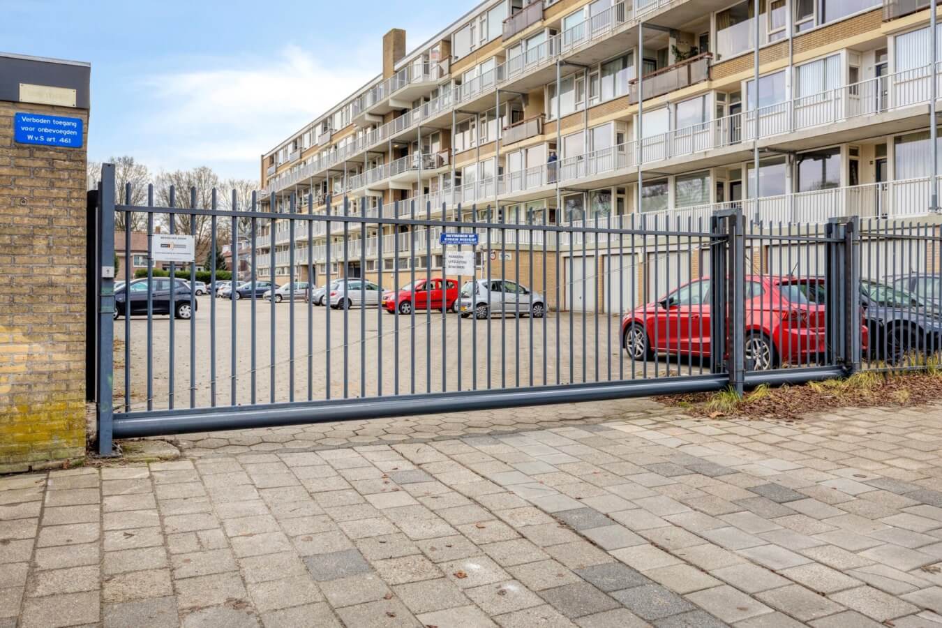 Op de begane grond vind je de gemeenschappelijke centrale entree, met de brievenbussen, het bellentableau, het trappenhuis, de liftinstallatie en toegang tot de gemeenschappelijke fietsenstalling en de algemene containerruimte. Achter het complex is een afgesloten gezamenlijk parkeerterrein gesitueerd, dat enkel voor bewoners toegankelijk is.