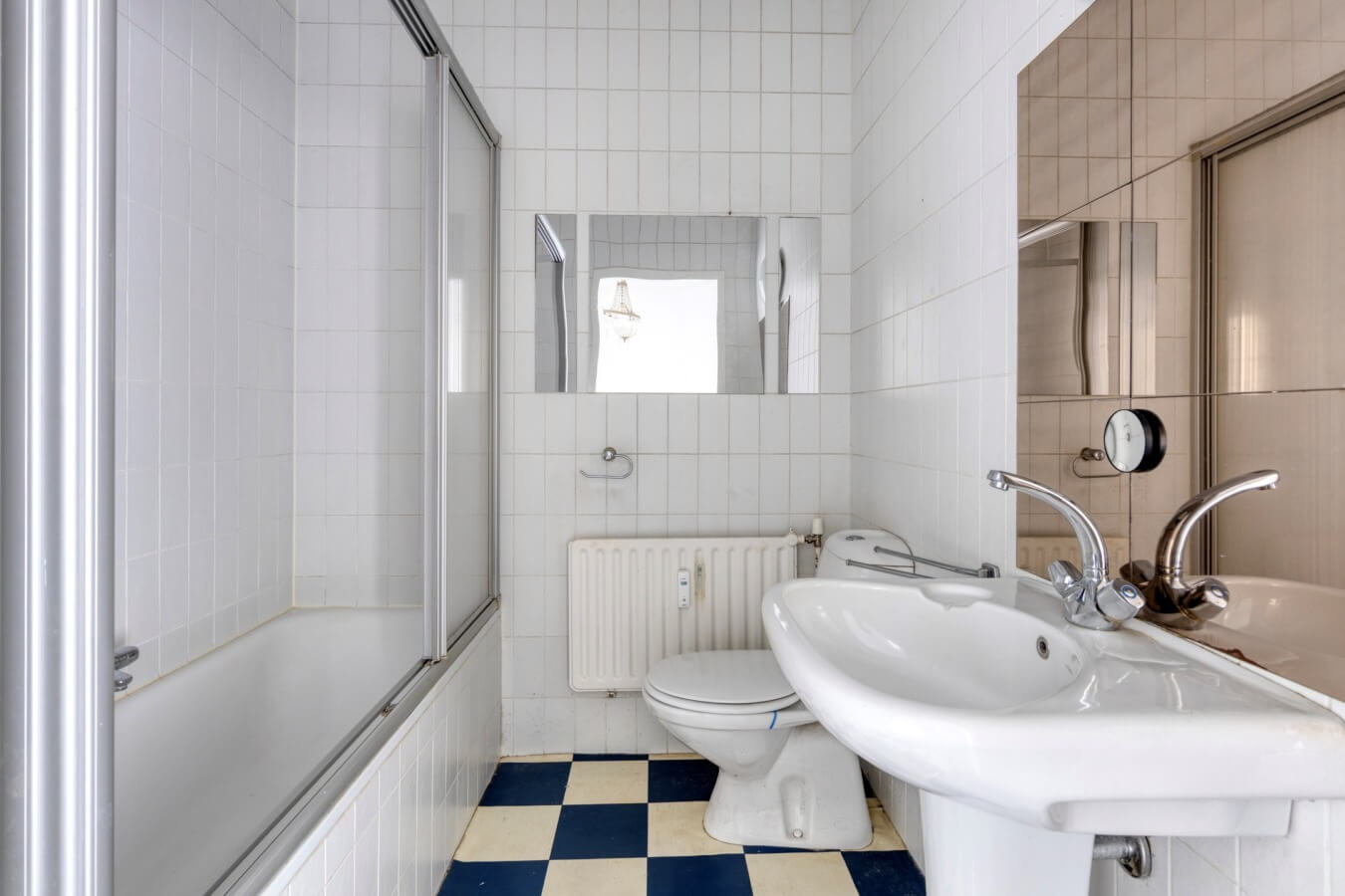 Zowel in de bijkeuken op de eerste woonlaag als in de toiletruimte en de keuken spot je dezelfde speelse tegelvloer. Mocht deze nu niet binnen jouw smaak vallen, dan heb je alle mogelijkheden om het naar wens te veranderen. Bekijk de ruimtes dus vooral met jouw eigen vloerkeuze in het achterhoofd.