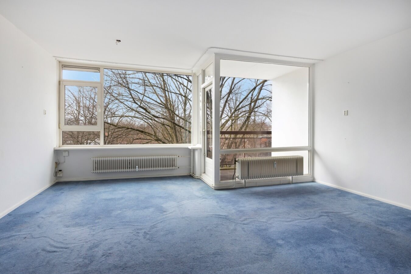 Last but not least – althans, voor de vertrekken op de eerste woonlaag – lopen we de living binnen. Bij binnenkomst voel je meteen: dit wordt na wat inrichten, stylen en het leggen van een eigen vloer, een heerlijk plekje om dagelijks te vertoeven. De fijne hoeveelheid lichtinval en de keurige basis heb je in ieder geval vast in de pocket. Net als de handige vorm en de ruimte van de kamer, waardoor je straks gemakkelijk een cozy zitgedeelte en een leuk eetgedeelte kan realiseren. Kortom: aan de slag!
