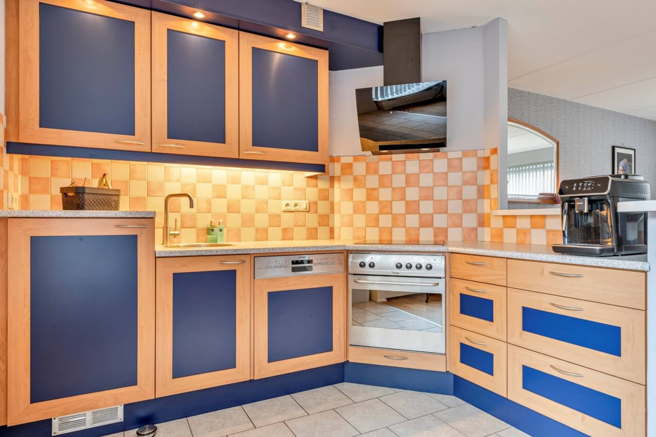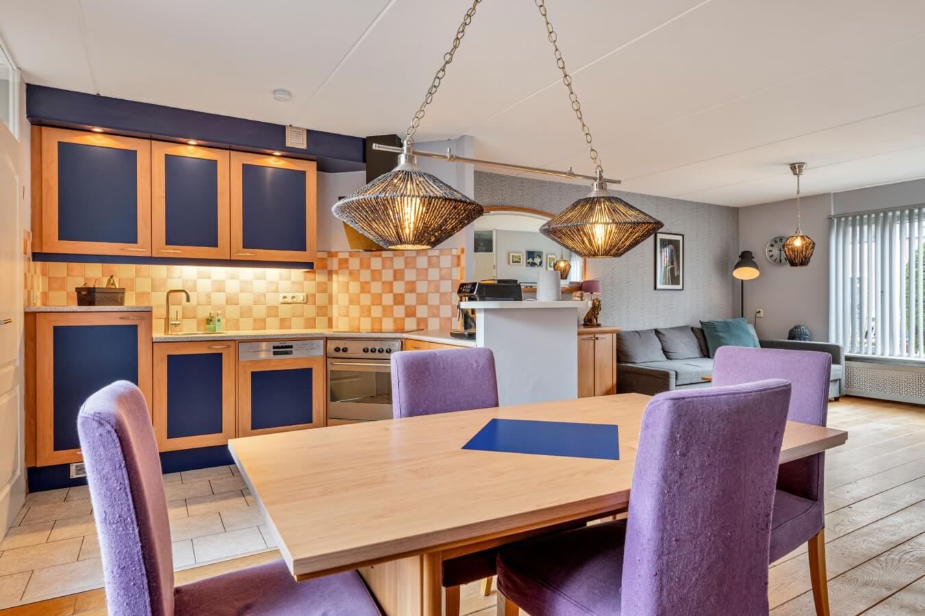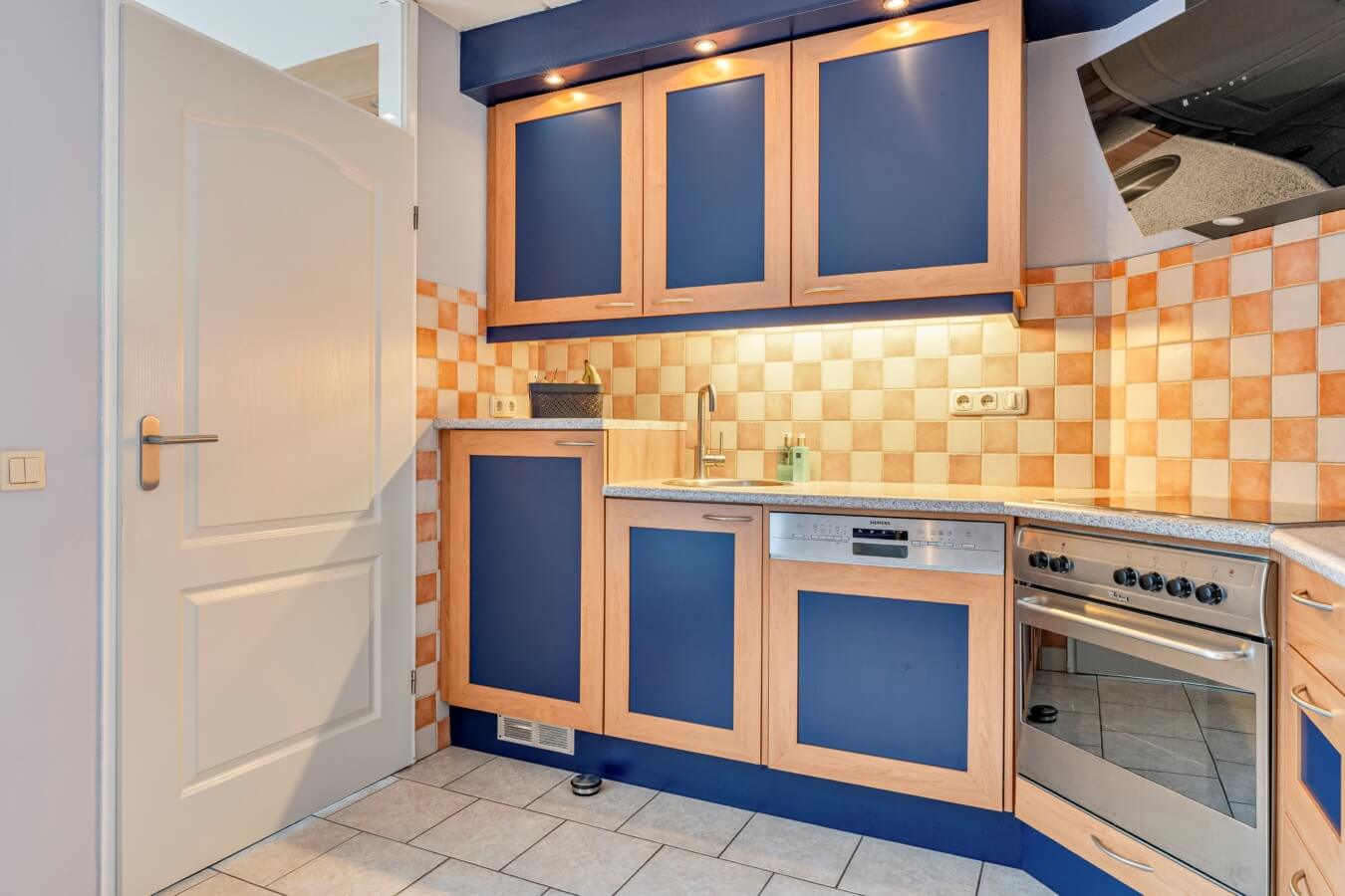 De open keuken bevindt zich aan de achterzijde van de leefruimte en staat dus in verbinding met de woonkamer. De keuken is ruim van opzet en beschikt over diverse inbouwapparatuur (lees: koelkast, vaatwasser, oven, keramische kookplaat en afzuigkap) en heeft dus alle ruimte en aansluitingen die je nodig hebt.