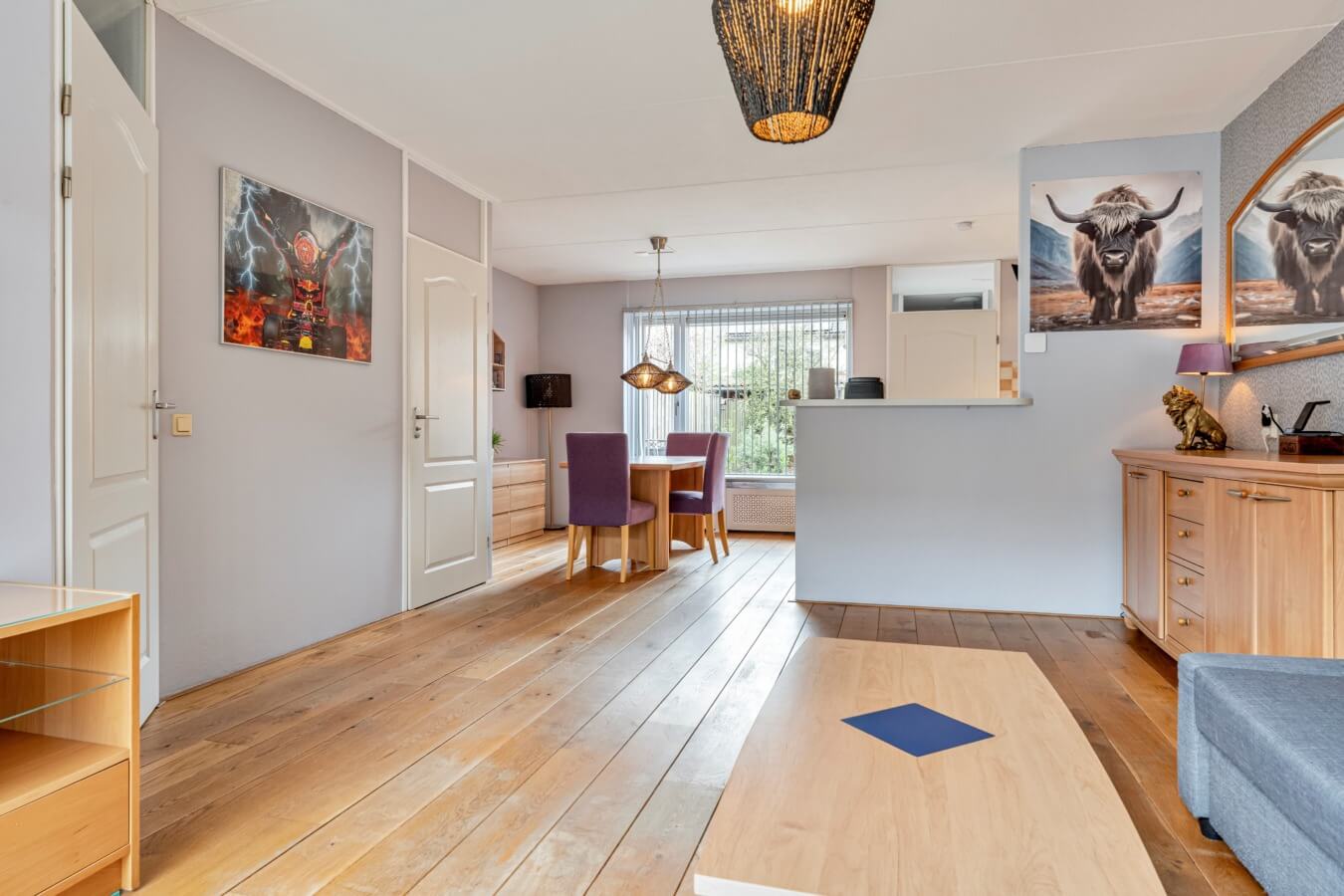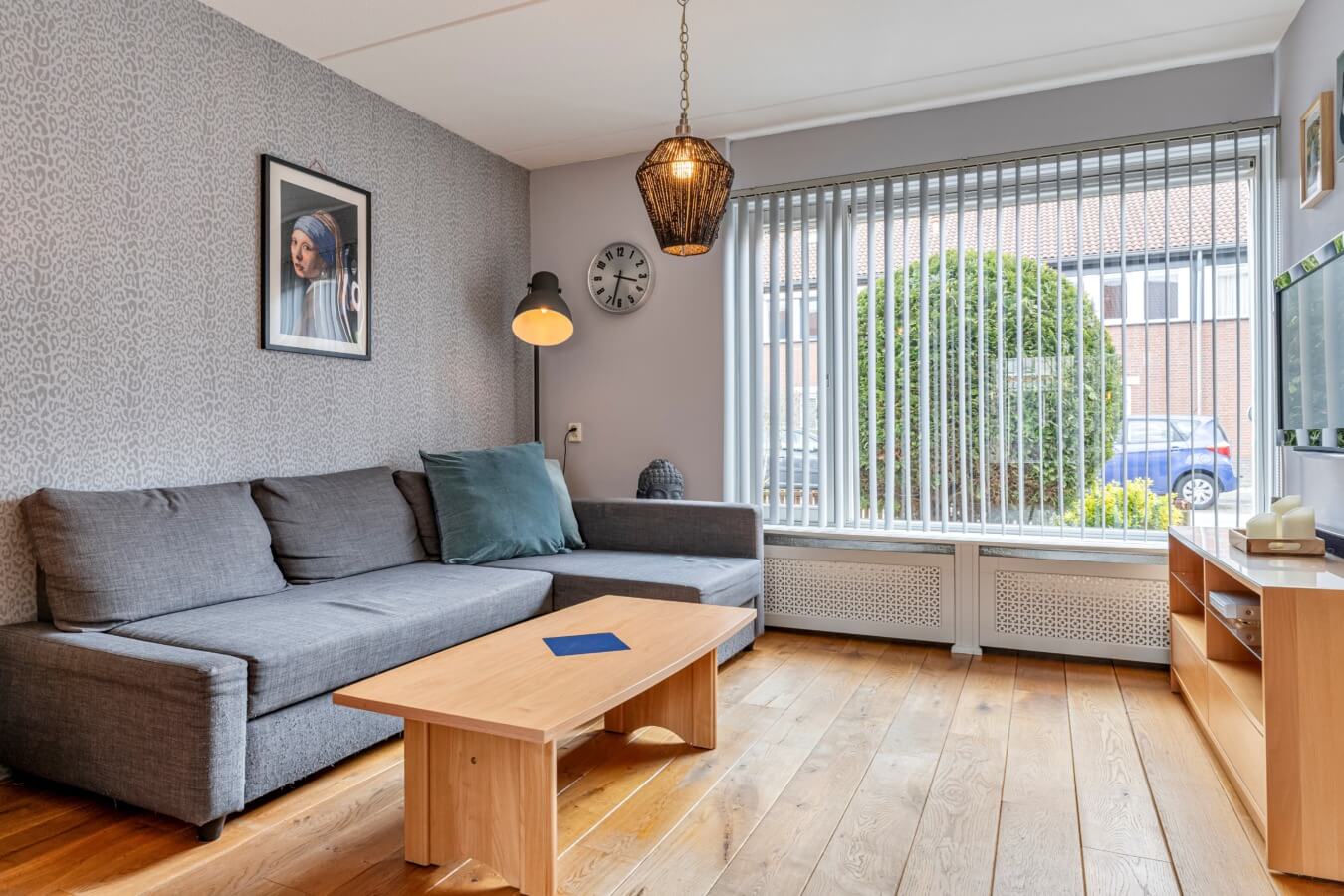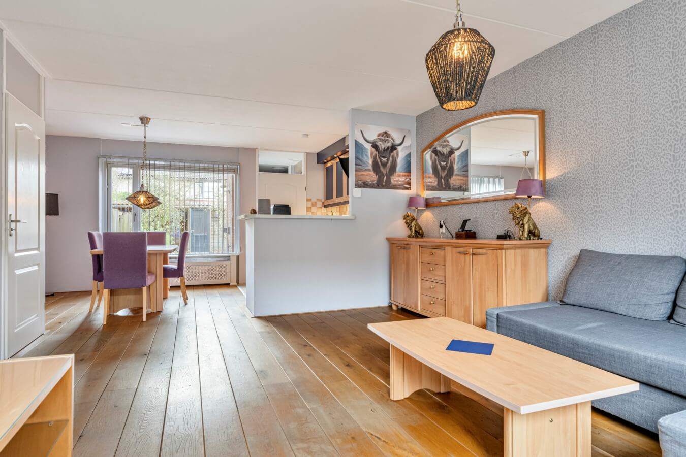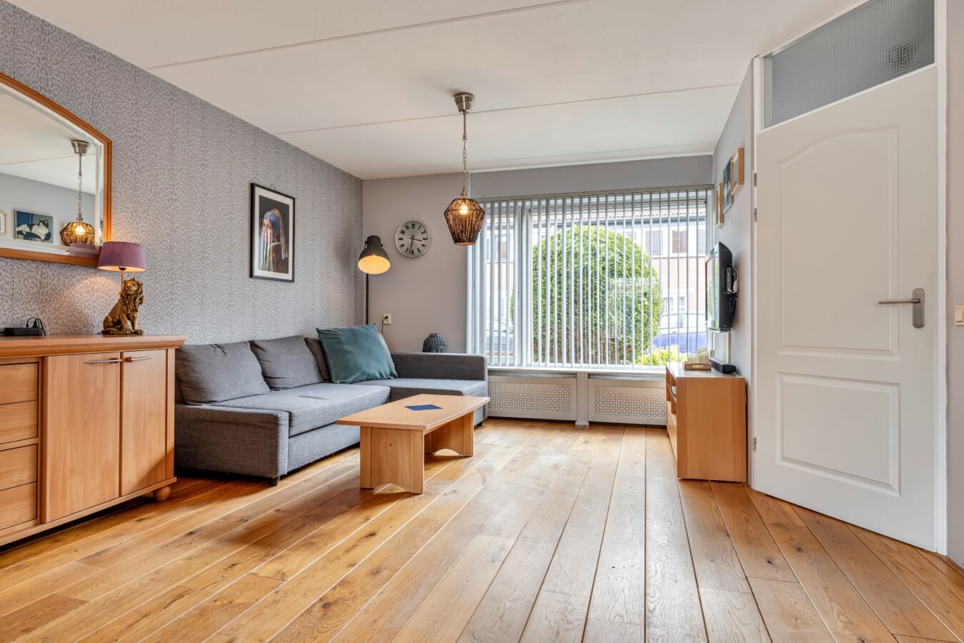 En die woonkamer? Die is, met haar rechthoekige vorm en ruimte, absoluut de moeite waard om te toveren tot jouw ideale living. Door de fijne indeling kan je hier gemakkelijk een gescheiden zit- en eetgedeelte creëren. De eikenhouten vloer geeft de ruimte direct een warme uitstraling, terwijl de grote ramen aan weerszijden zorgen voor een prettige lichtinval. Hier ontstaat vanzelf een plek waar je samenkomt, waar geleefd wordt en waar avonden langer mogen duren.