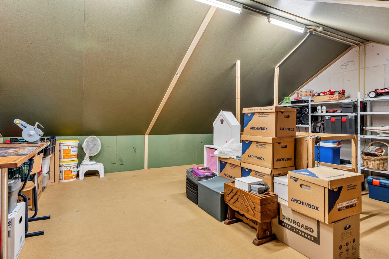 Via een vlizotrap bereik je de ruime bergzolder. Ideaal voor het opbergen van seizoensspullen en extra opslag.