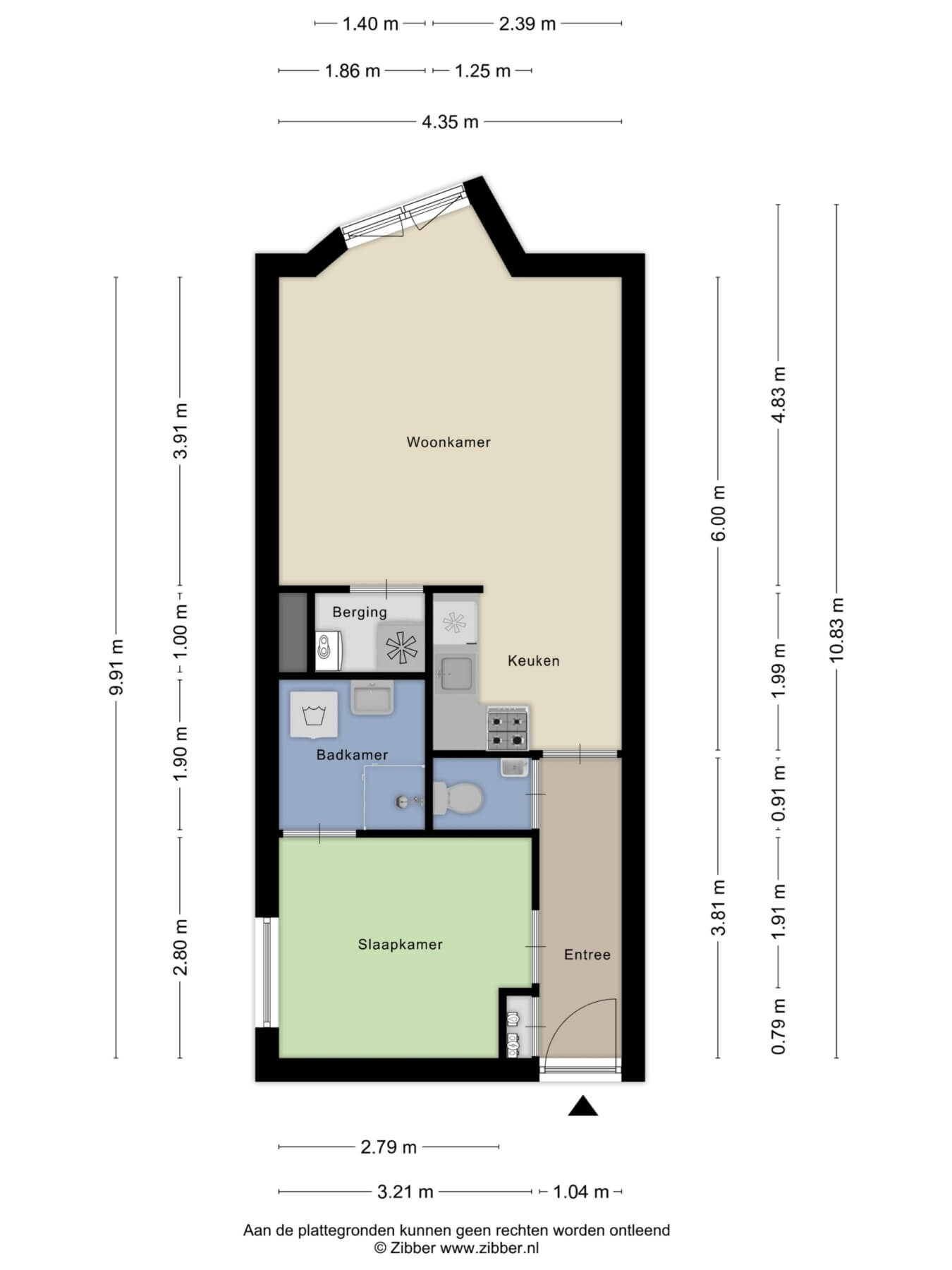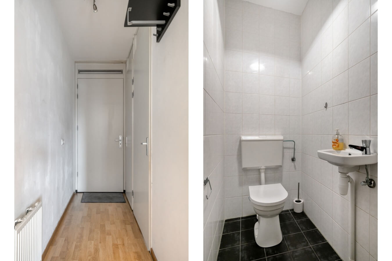 Entree/hal met meterkast en toegang naar toiletruimte met toilet en fonteintje. Vanuit de hal zijn de woonkamer en de slaapkamer te bereiken. De woonkamer met open keuken beschikt over een Frans balkon met openslaande deuren. Hierdoor is er sprake van aangenaam natuurlijk lichtinval.