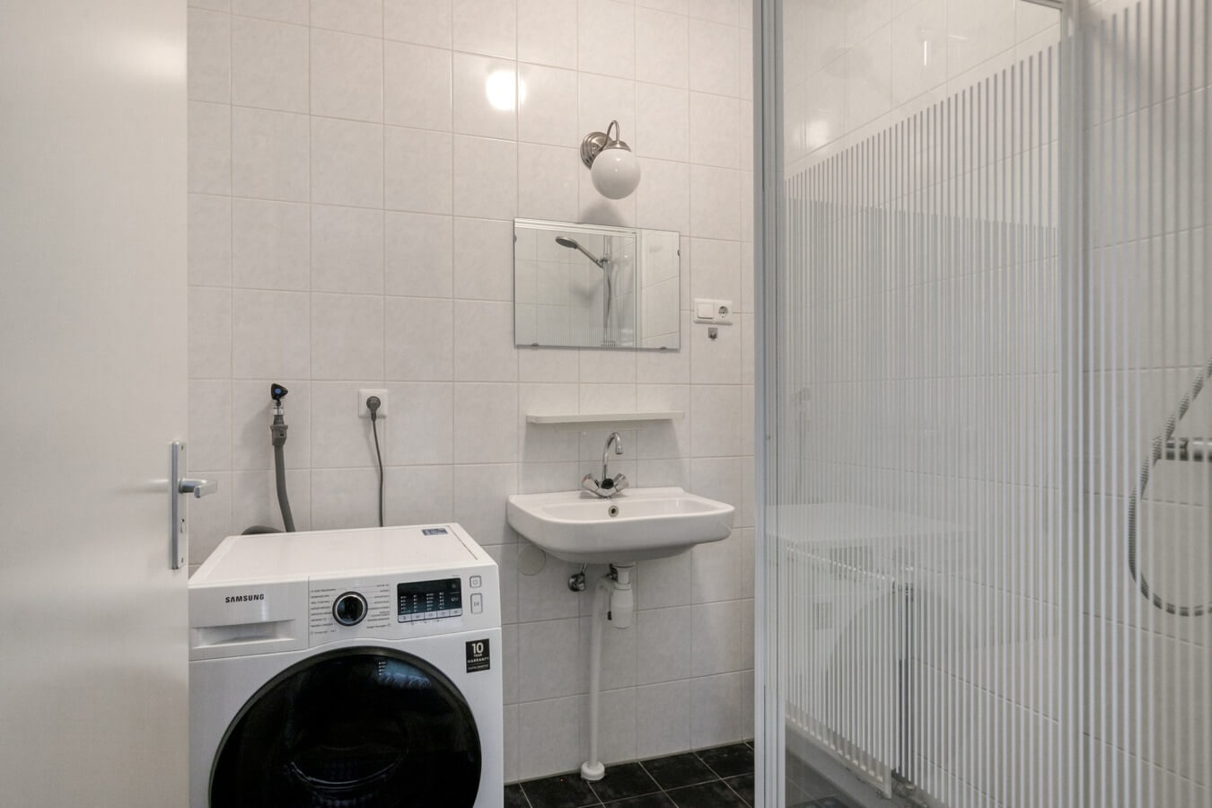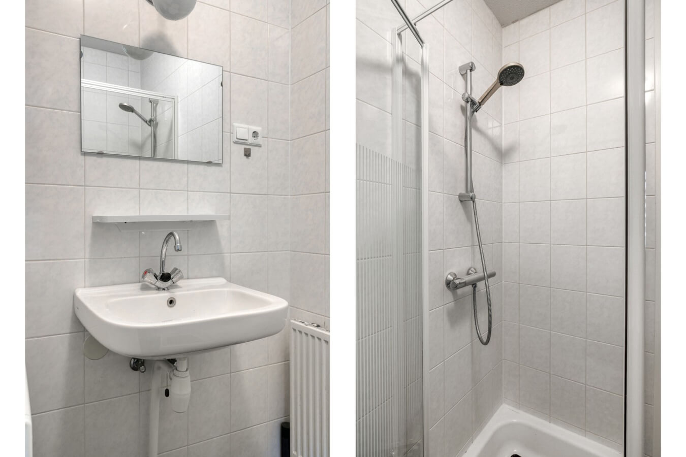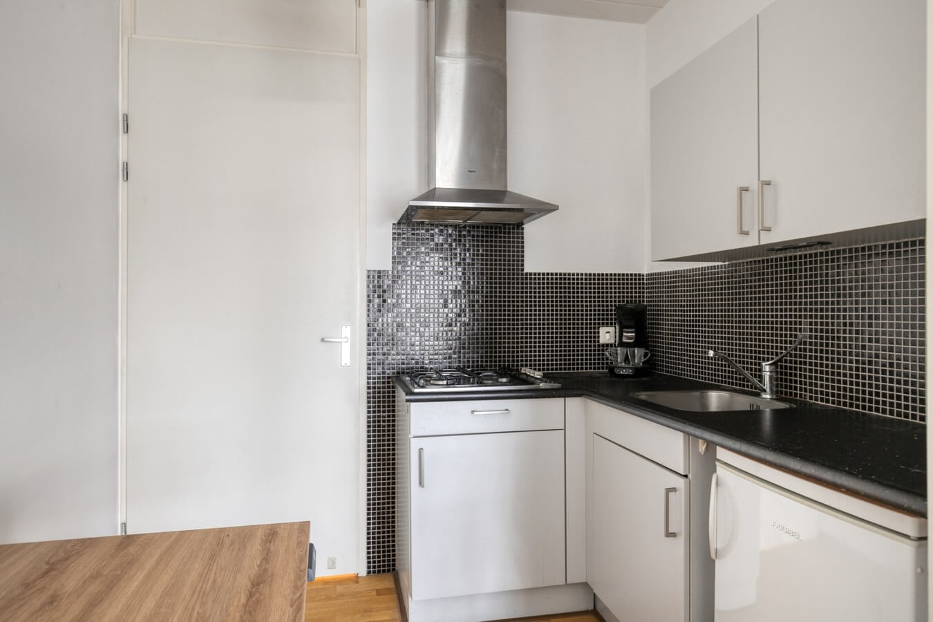 De open keuken in hoekopstelling is voorzien van een 4-pits gaskookplaat, spoelbak en afzuigkap. In de woonkamer bevindt zich tevens de inpandige berging met daarin de opstelling van de HR combiketel (2020). Hier is tevens voldoende bergruimte aanwezig om de nodige spullen te stallen. Aan de voorzijde (galerijzijde) van het appartement bevindt zich de nette slaapkamer. De slaapkamer biedt toegang tot de badkamer met douchecabine, wastafel en een aansluitpunt ten behoeve van de wasmachine.