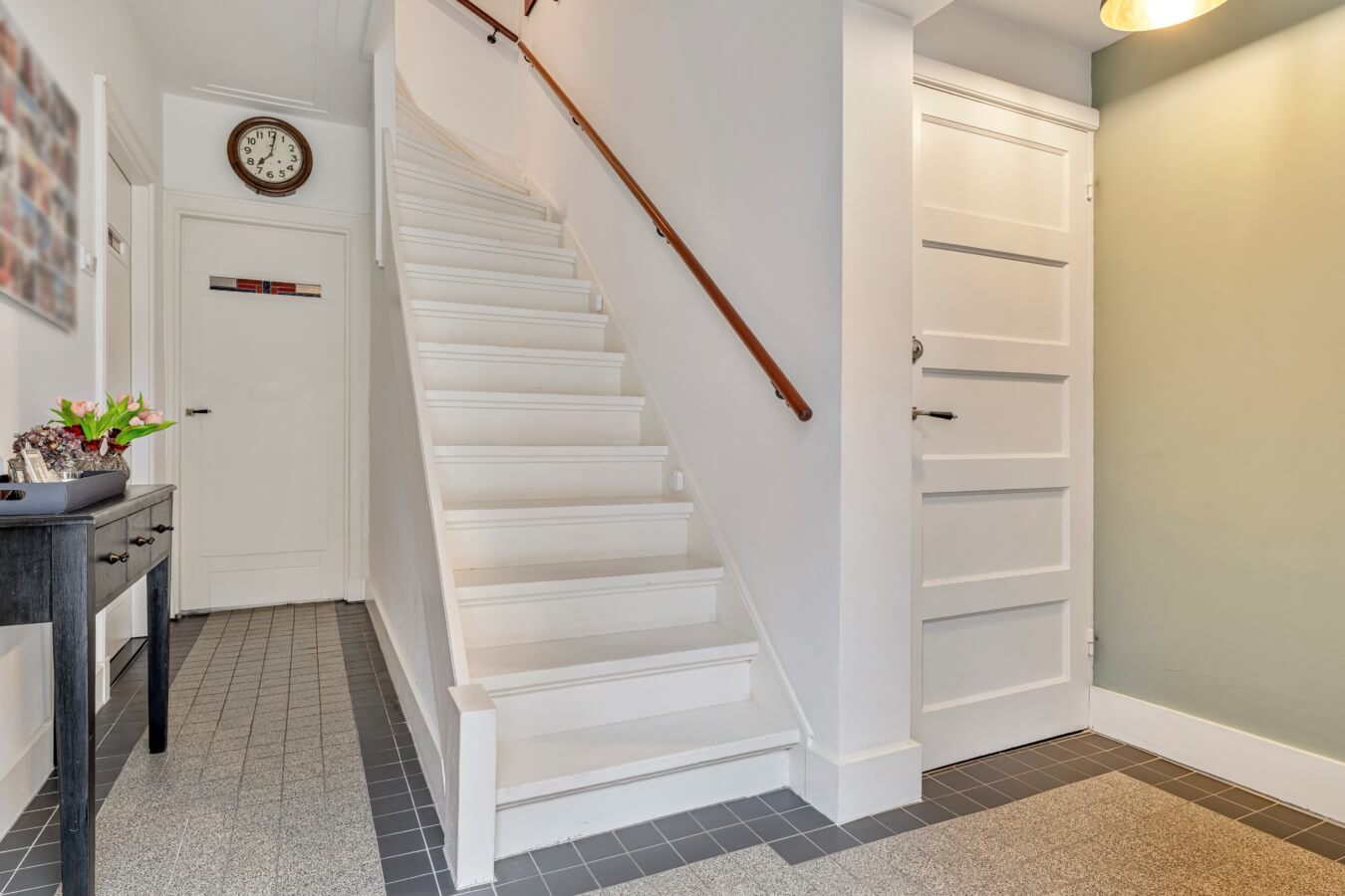 De bijzonder ruime entree verwelkomt je met een fraaie authentieke vloer, trapopgang, provisiekast, meterkast en een modern toilet. De hal, keuken en woonkamer zijn voorzien van comfortabele vloerverwarming, wat zorgt voor een aangenaam en gelijkmatig binnenklimaat.