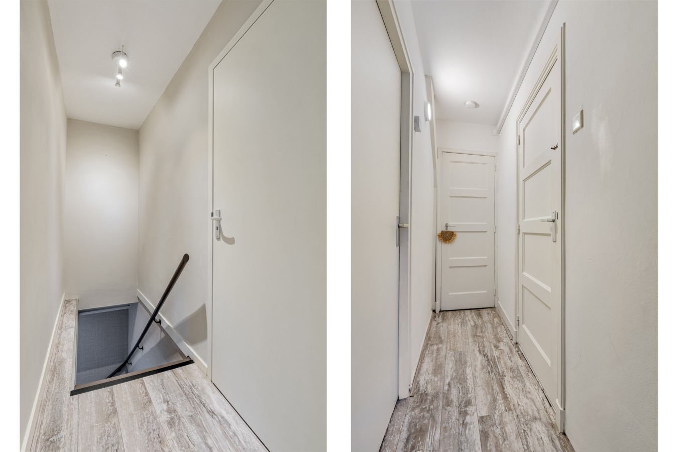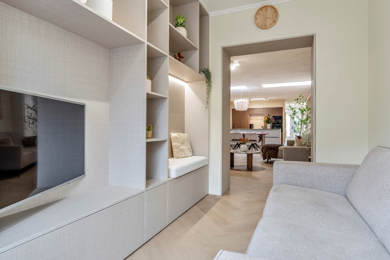 Wanneer je de woning binnenstapt ontdek je rechts de meterkast en links de trapopgang. Maar nog veel belangrijker: het vertrek suprême betreed je via de deur rechtdoor.