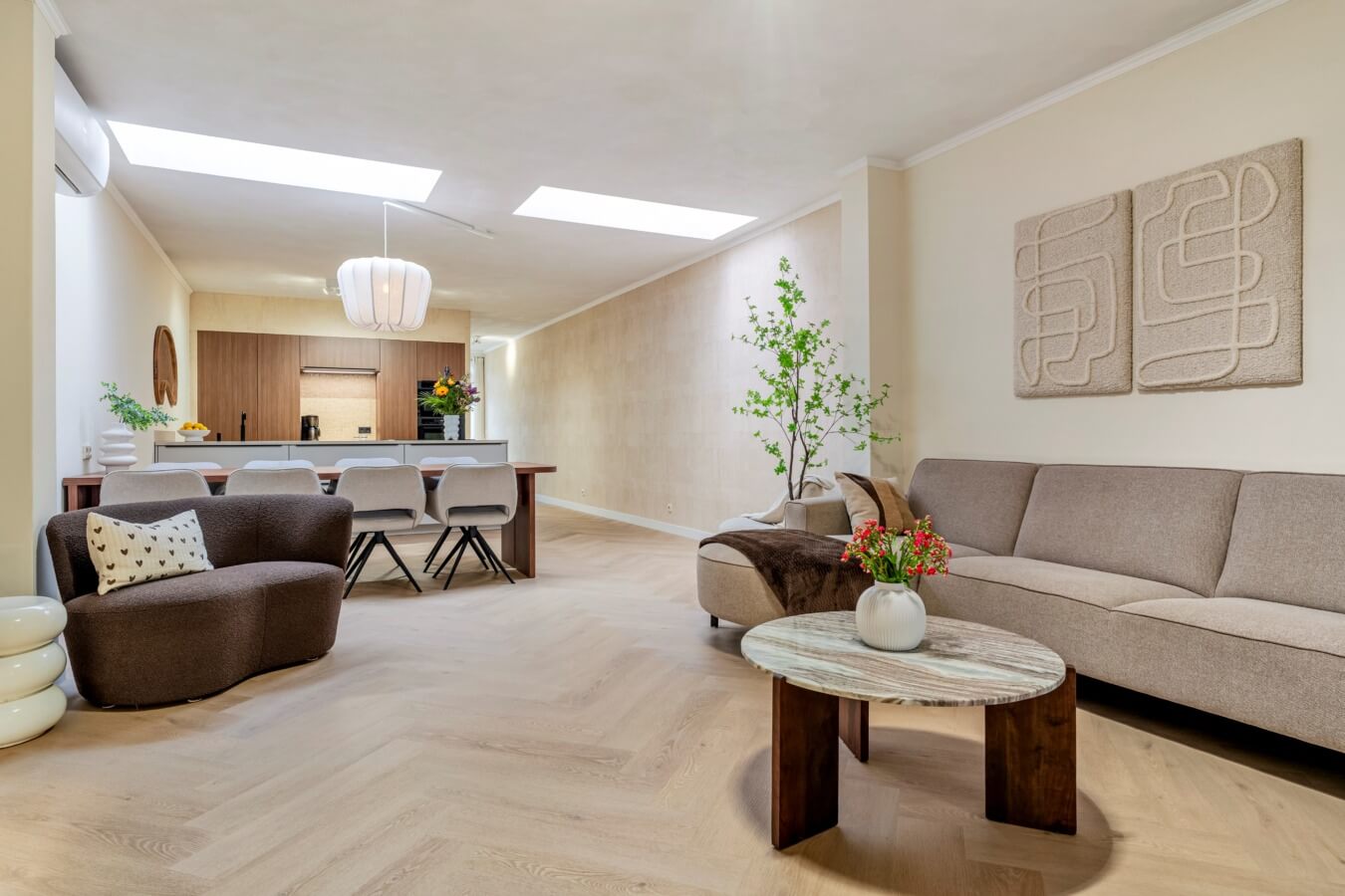 – Moderne en sfeervolle leefruimte met visgraatvloer;