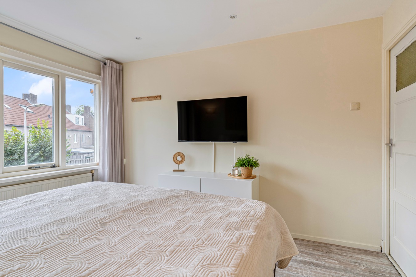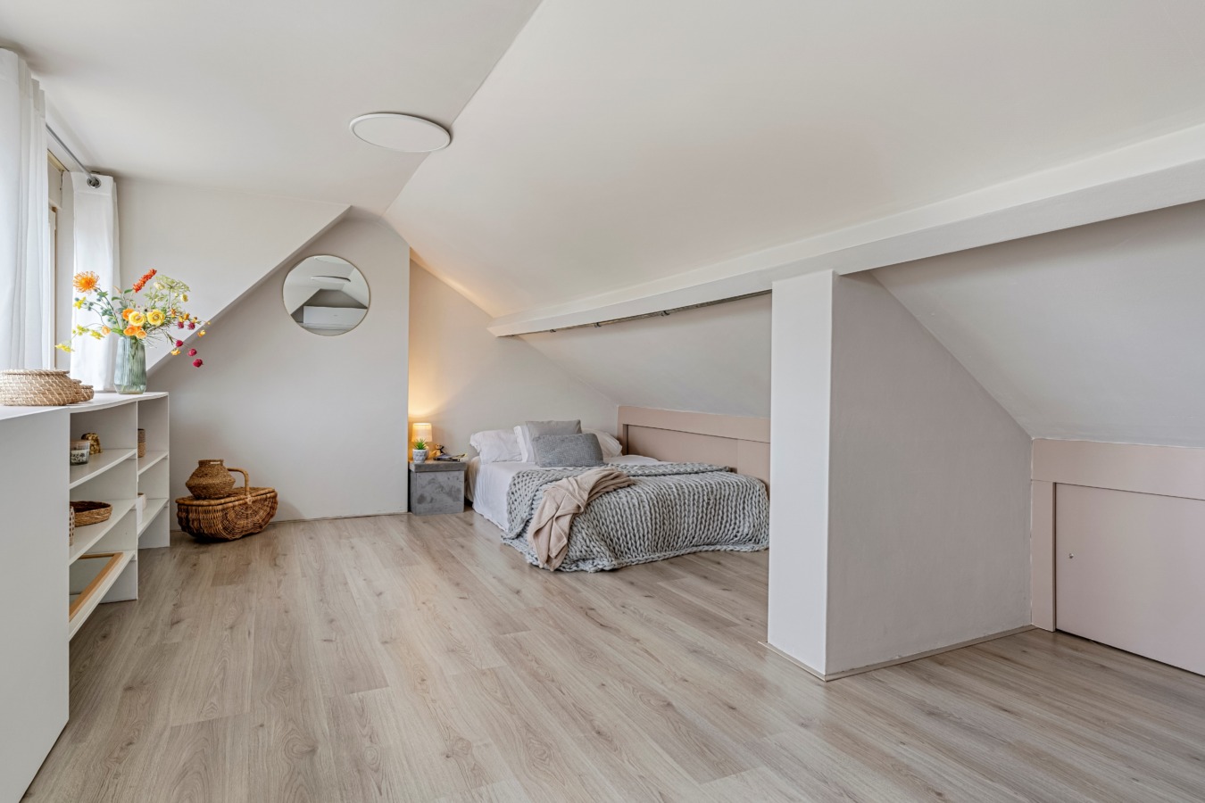 Het antwoord op die laatste vraag is in ieder geval niet: “een geweldige zolderverdieping, bestaande uit een waanzinnige master bedroom.” Dat heb je namelijk wél. Dit is een bijzonder grote, nette en sfeervolle slaapkamer onder het schuine dak, inclusief een dakkapel (2015) en een eigen airco-unit. Als je hier straks niet heerlijk slaapt, dan weten wij het ook niet meer.