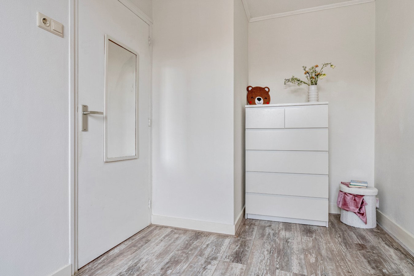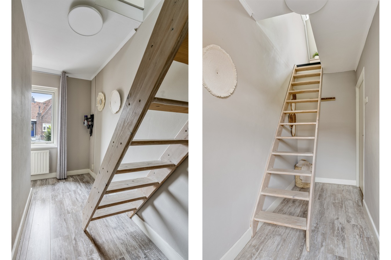 Middels de trap in de hal kom je terecht op de eerste verdieping, waar drie slaapkamers en de kast met de CV-ketel te vinden zijn.