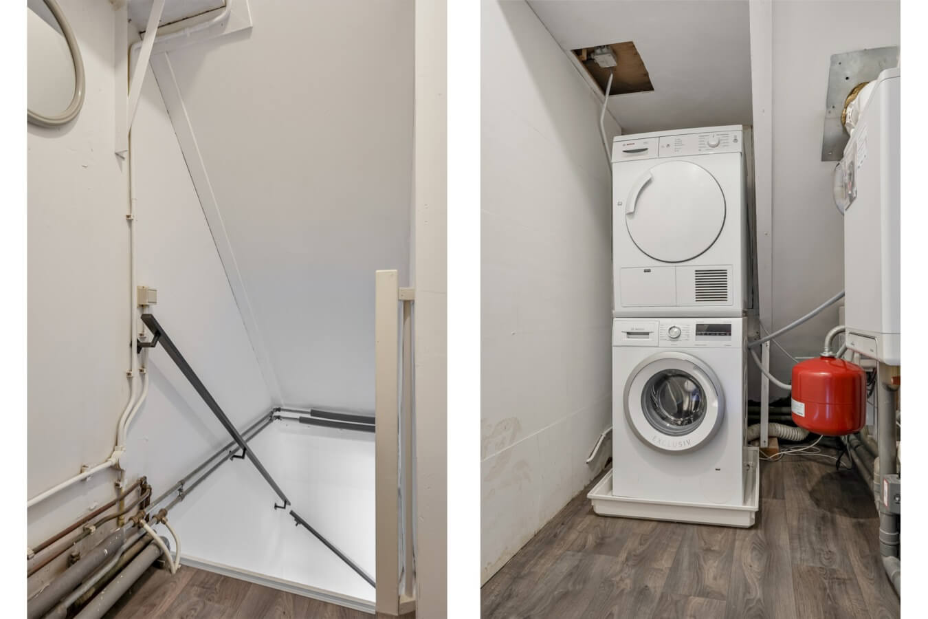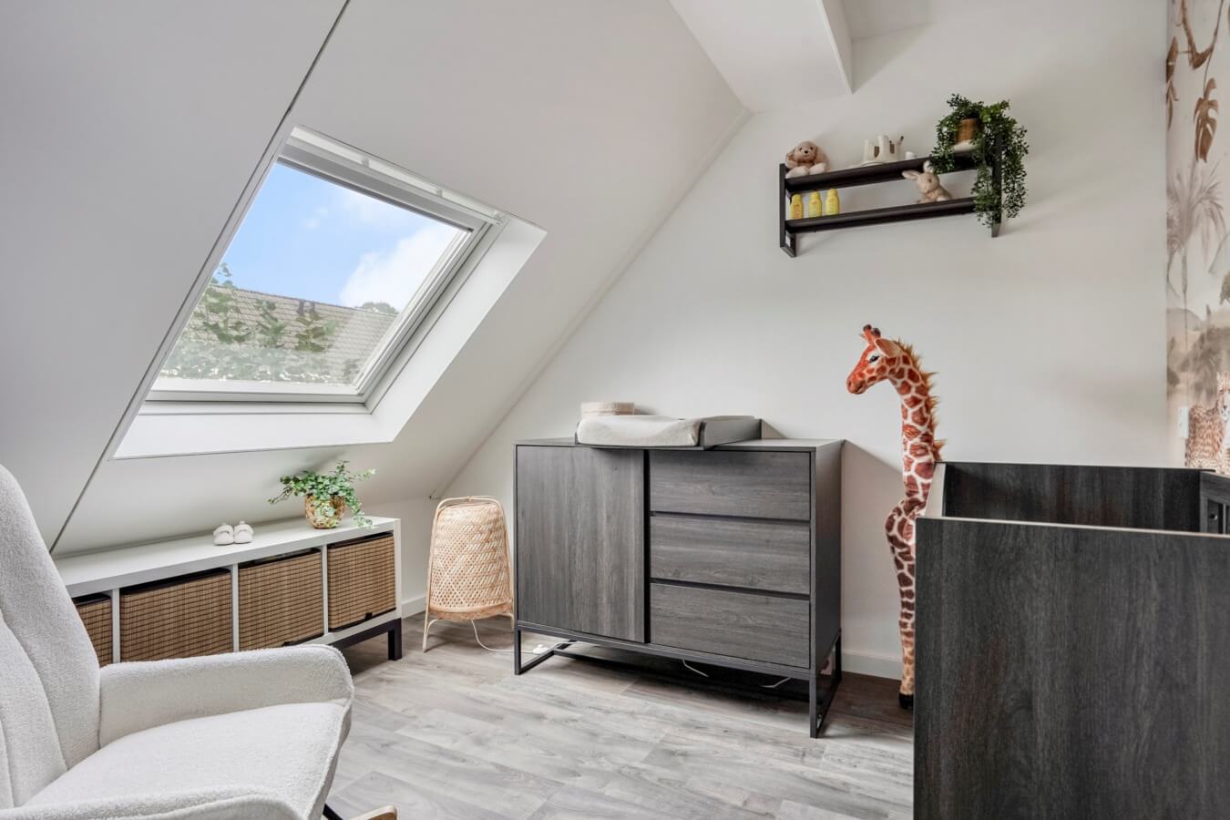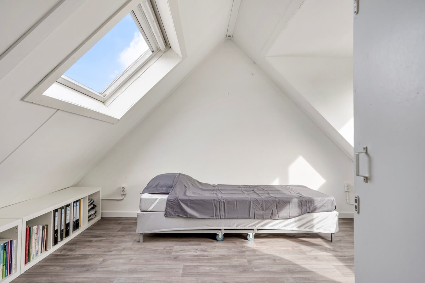 De zolder van de woning bestaat uit een overloop met de Intergas HR-combiketel (2022) en de aansluitingen voor wasapparatuur en een volwaardige, netjes afgewerkte en mooie derde slaapkamer. In deze kamer verzorgt het schuine dak met dakraam (HR++ glas (2005)) en het dakkapel voor bakken aan sfeer en licht.
