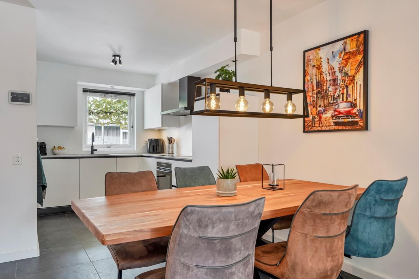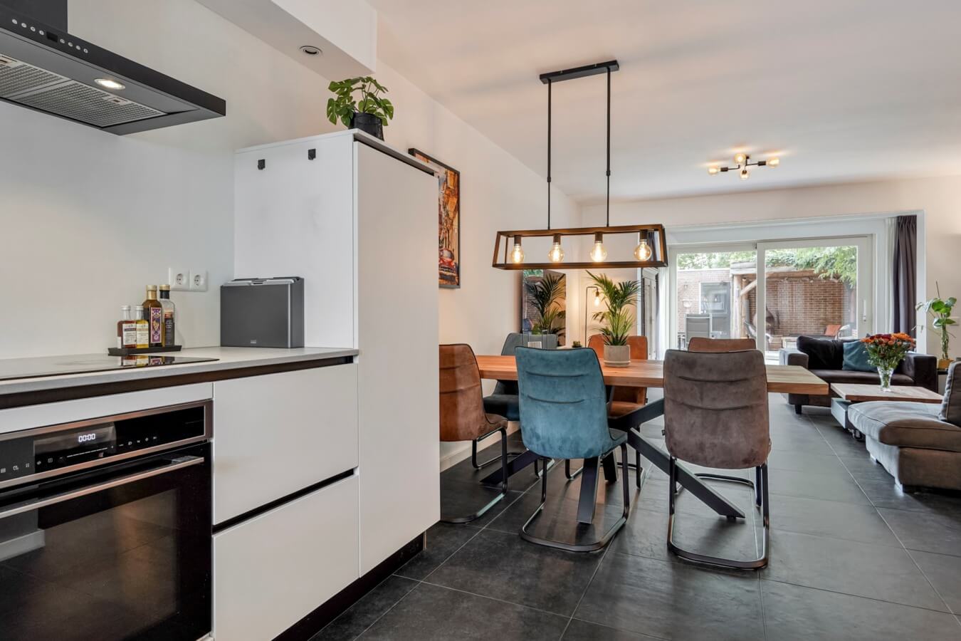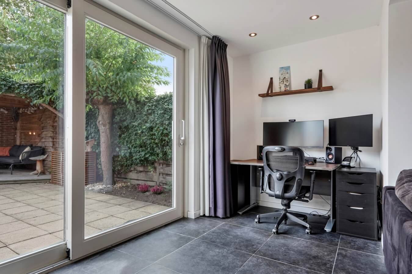En die living? Die komt in de vorm van een heerlijke leefruimte van maar liefst ca. 10 meter diep, compleet met uitbouw, vloerverwarming (2019) en airco (2022). De lichtinval is prachtig, de ruimte is royaal en de afwerkingen zijn netjes. Zak lekker onderuit in het mooie zitgedeelte, of tafel lang en uitgebreid in het stijlvolle eetgedeelte nabij de kleuken. Of ga je aan de slag om de laatste werkdingen af te ronden in de knusse werkhoek nabij de schuifpui, achter de toog? Dit laatstgenoemde stuk kamer leent zich perfect als werkplek, zoals de huidige bewoners de ruimte in gebruik hebben, maar kan bijvoorbeeld ook dienen als speelhoek, leeshoek of ruimte voor een muziekinstrument.