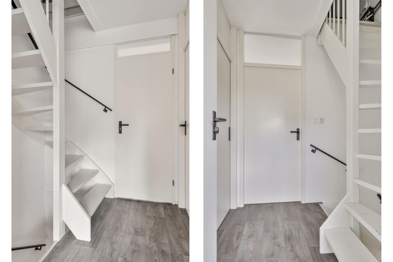 Via de vaste trap in de living kom je terecht op de eerste verdieping van de woning. Hier heb je toegang tot twee slaapkamers en de badkamer.