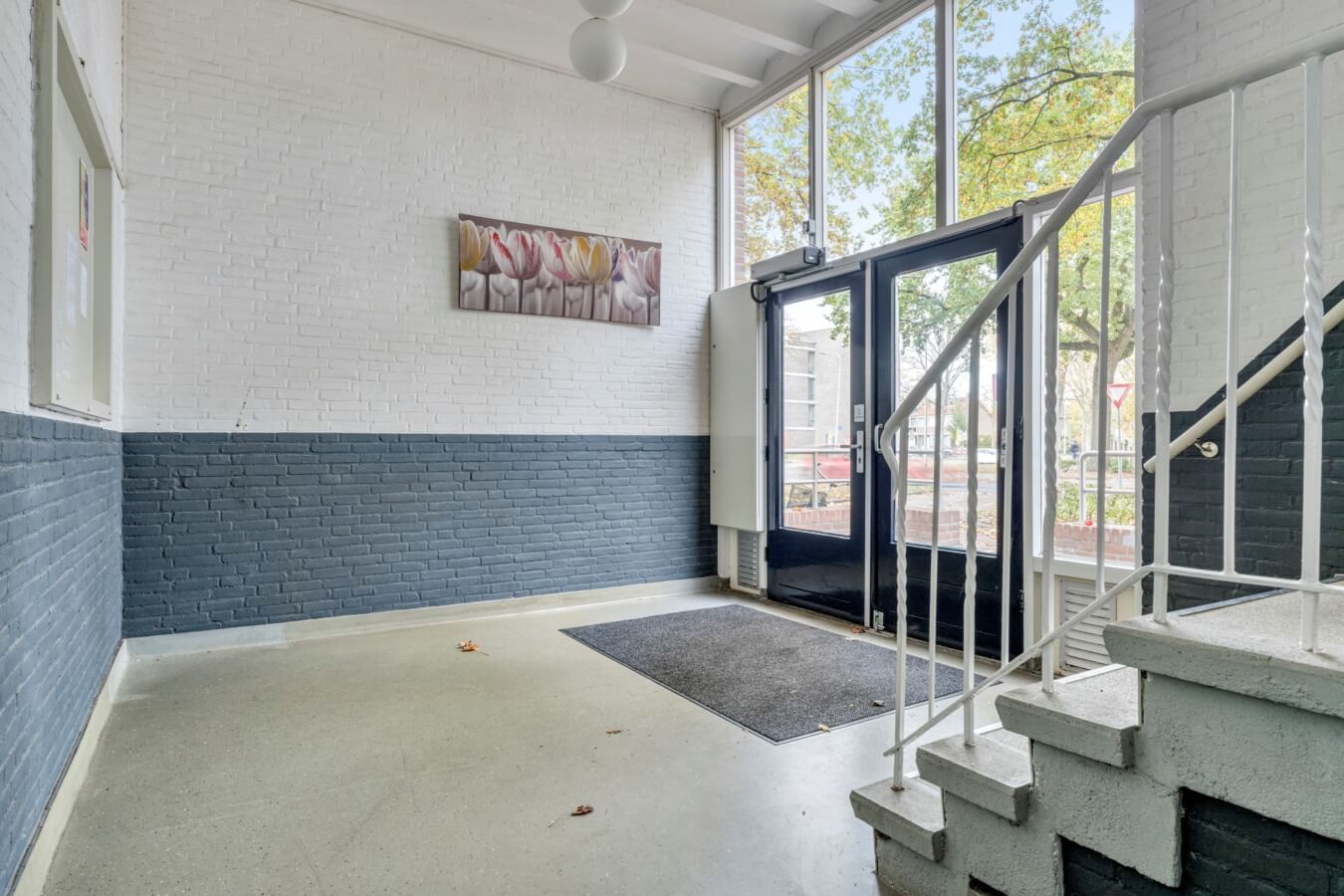 Op de begane grond vind je de gemeenschappelijke centrale entree, met de brievenbussen en het bellentableau. Vanuit hier heb je toegang tot het trappenhuis en jouw eigen handige berging.
