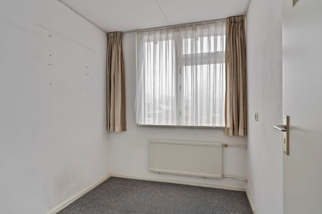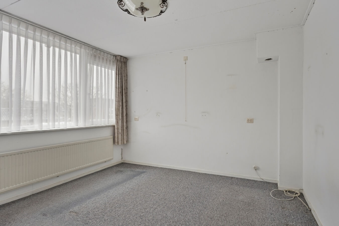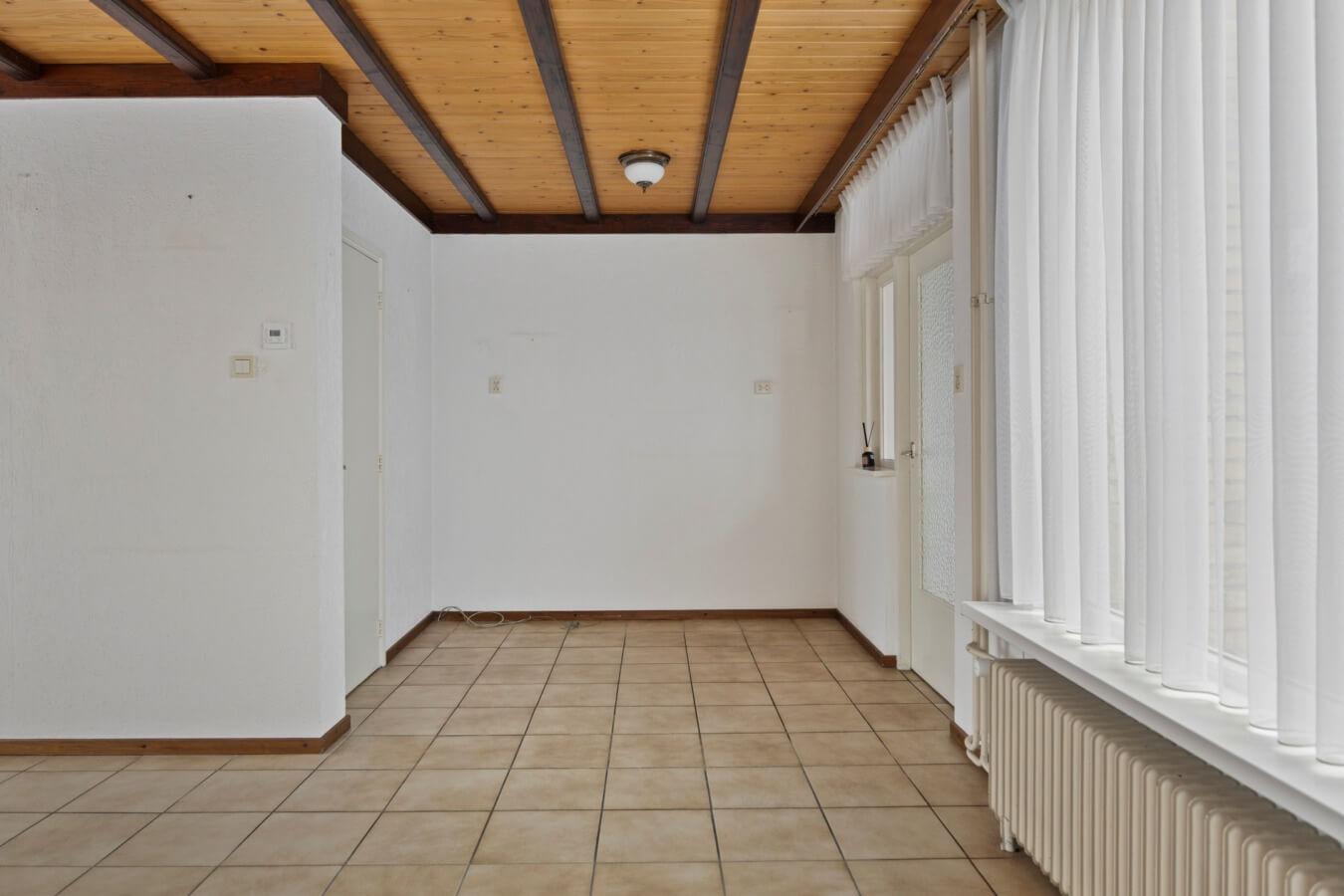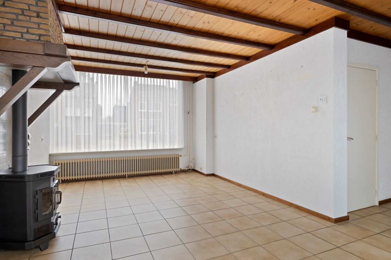 Over de woonkamer gesproken: hier zie je meteen de mogelijkheden voor een warm en gezellig thuiskomen. Grote ramen zorgen voor veel natuurlijk licht, de schouw geeft de ruimte een authentiek gevoel en de kamer kan gemakkelijk verdeeld worden in een in elkaar overlopend zit- en eetgedeelte. Kortom: na wat klussen, stylen wordt dit in no time een leefruimte waar jij met veel plezier zal rondlopen.