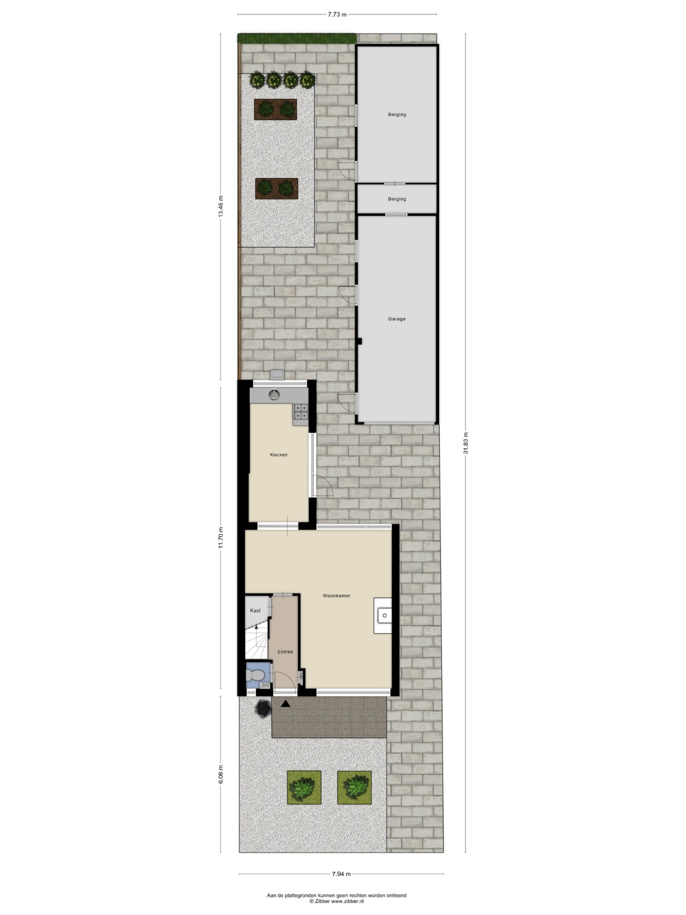 – Diepe tuin op het noordwesten met grote garage;