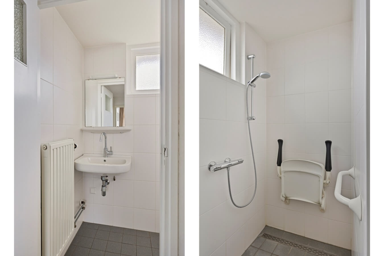 De compacte badkamer aan de linker voorzijde is uitgerust met een inloopdouche en wastafel. Deze ruimte zal je wederom willen moderniseren met het oog op de woonwensen van deze tijd. Wil jij natuurproducten in de badkamer terugzien, of ga jij toch voor de donkere badkamertrend?